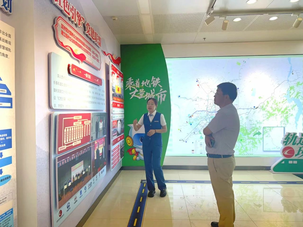 首先,长春市轨道交通集团公司人力资源部副部长于淼陪同石校长一行参观了“城市的轨迹”--长春市轨道交通发展历程展。展馆通过图片、模型、实物等形式,全面展示了长春市轨道交通从无到有、从小到大的发展历程,以及在规划设计、工程建设、运营管理等方面取得的成就,通过丰富的展品和详细的解说,使我校领导深入了解到长春市轨道交通的发展过程和现状。