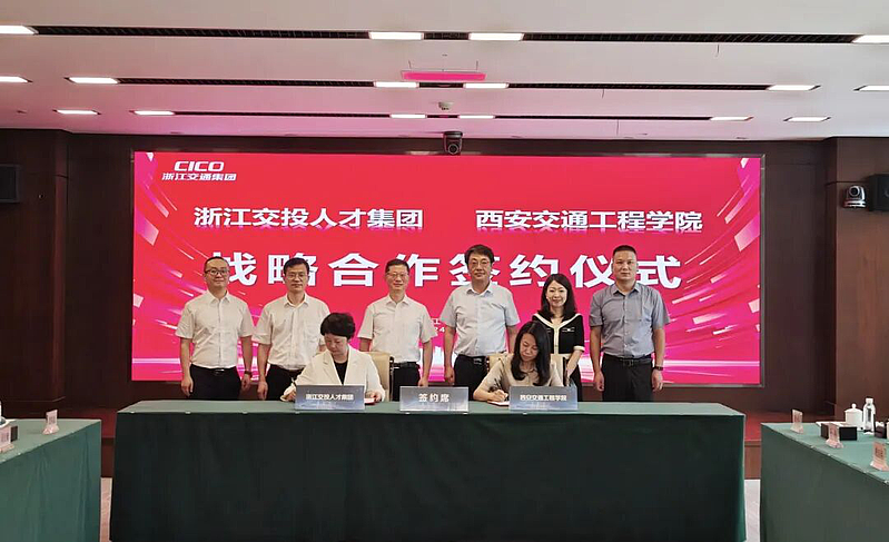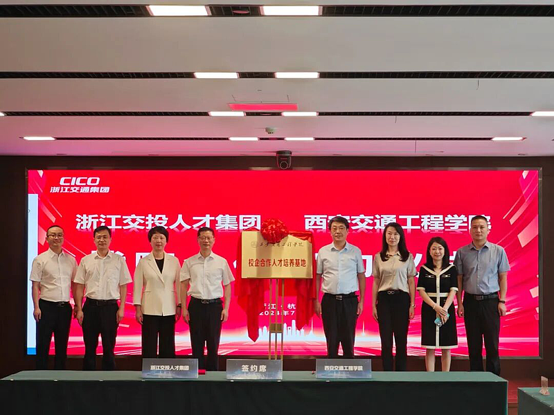 7月19日,学校与浙江交投人才发展集团有限公司校企合作人才培养签约仪式圆满举行。我校校长曹庆年、副校长徐炜、学生就业指导服务中心主任王丹、机电学院党委书记兼校友会主任王拓辉、学生就业指导服务中心科长冀世保出席本次签约仪式。