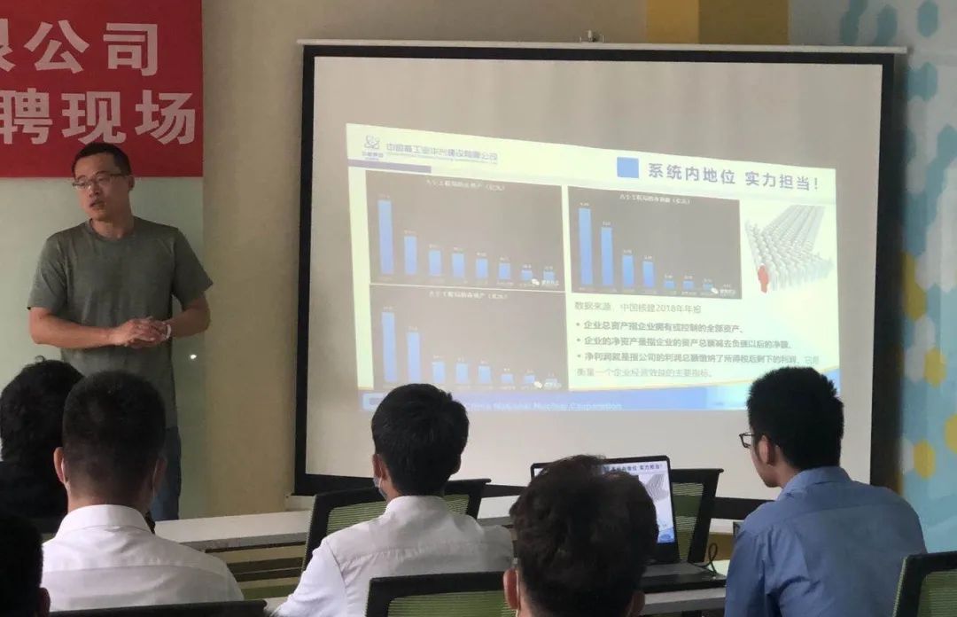 据悉,中国核工业华兴建设有限公司隶属于中国核工业集团公司,具有4个事业部,8个区域分公司,23个控股参股子公司。公司成立了工程技术研究中心,并拥有省级技术中心一个,中高级职称专业技术人员1200余人,自主研发核心施工技术和关键施工工艺数十项。近五年,获得国家授权专利200余项,获得包括建筑工程“鲁班奖”、国家优质工程金质奖在内的国家及省部级工程奖项200多个。中核华兴钢结构管理部综合管理部主任刘天喜向参会学生介绍了钢结构管理部概况,用图片形式展示了滨江基地特种门车间、钢结构加工车间、机加工车间以及办公楼、宿舍楼概况。