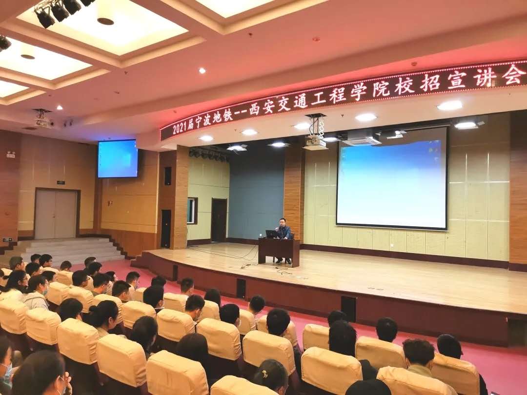 宣讲会上,宁波轨道交通运营分公司人力资源部杨刘镇为学生播放了宁波城市及宁波轨道交通运营公司的宣传片,其次就公司的企业简介、员工规模、公司轨道交通“三轮建设规划”、员工职业发展通道、薪资待遇等进行详细介绍,并讲述了选择轨道交通行业的优势所在。