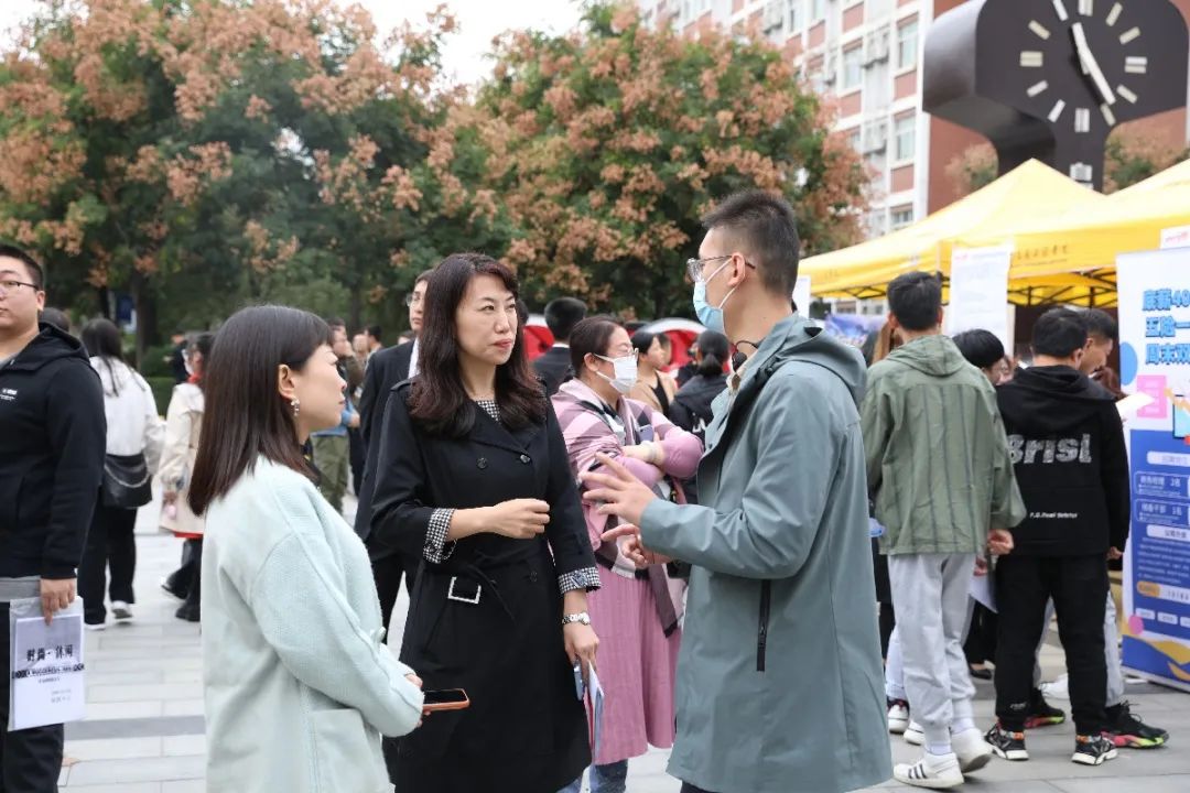 招聘会现场气氛热烈,我校张晋生理事长、刘建朝校长与用人单位面对面交流,了解其近期招聘要求及轨道交通类、电子信息类等未来几年的人才储备计划,力争使每名有就业意愿的毕业生在年底前实现就业或参加到就业准备活动中。徐炜副校长则与参会的毕业生亲切交谈,了解其就业期望,鼓励把握政策导向、转变就业观念,引导他们理性看待就业形势,向更多领域寻求发展机会。