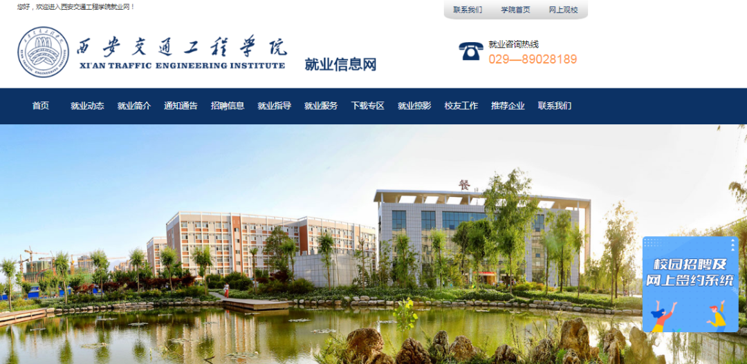 第1步:西安交通工程学院官网,点击招生就业栏“就业网”