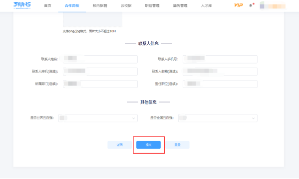 第4步:单位入驻高校由于我校设置了单位需入驻的条件,单位需入驻该高校才可报名我校的双选会以及申请宣讲会和招聘信息。
