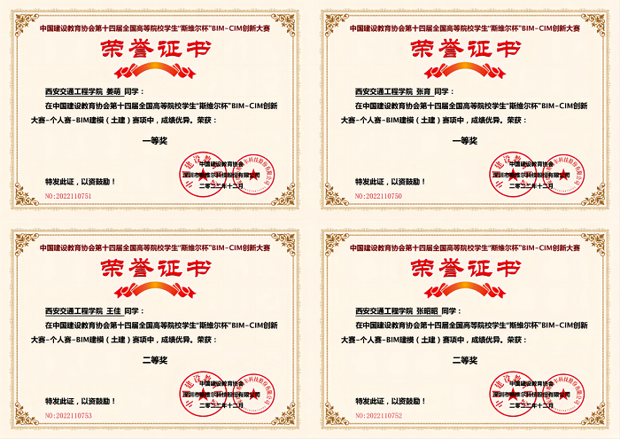我校学生在第十四届全国高等院校学生“斯维尔杯”BIM-CIM创新大赛中荣获BIM建模(土建)赛项一等奖2项、二等奖2项、三等奖1项