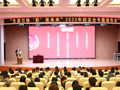 为提升学生的就业意识和就业能力,引导学生树立正确的职业观、就业观和择业观,激励西交院学子汲取榜样力量,砥砺奋进前行。由西安交通工程学院校友总会举办的“生涯引领、‘职’面未来”校友专题报告会暨校友捐书仪式,于4月4日下午在学术报告厅隆重举行。我校校长刘建朝、副校长徐炜、校友总会主任王拓辉、图书馆副馆长黄晓燕、校友邵永强、各学院校友负责老师和学生代表出席了此次活动。报告会由校友总会曹曦文主持。
