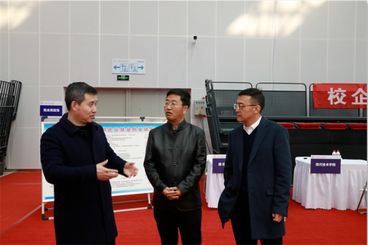 省教育厅领导、校领导先后与用人单位负责人亲切交流,详细了解企业招聘需求,并就当前就业形势与企业用工需求进行了沟通。