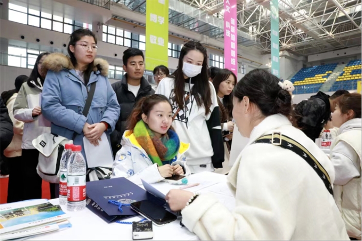 工作人员开展“公共就业进校园专场政策宣传”活动