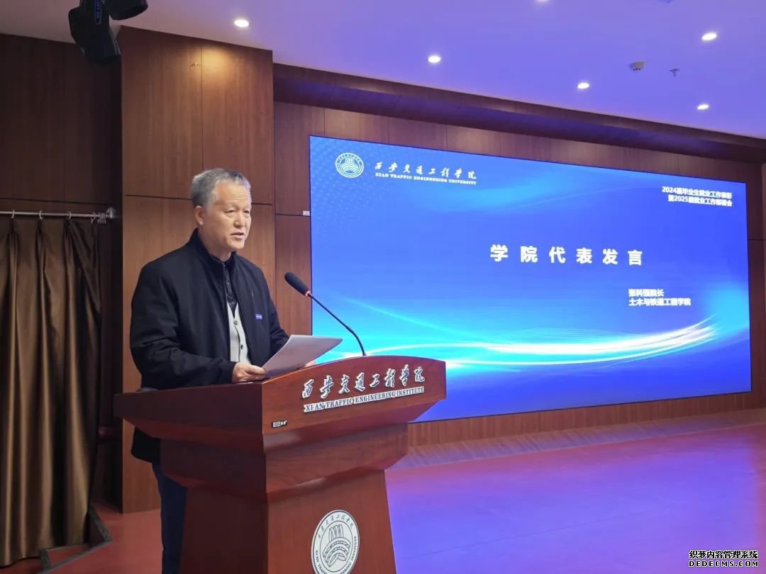 土木与铁道工程学院院长张科强分享了学院在就业工作中的经验和做法。他指出,2024年学院在毕业生就业工作上取得了显著成绩,并从2024届毕业生就业去向落实率、少数民族学生就业率、考研升学率以及访企拓岗成效等方面进行发言交流。他表示,面对2025年更加严峻的就业形势与行业转型升级挑战,学院已制定就业工作蓝图,包括优化人才培养、调整课程内容、拓宽就业渠道等措施,鼓励毕业生响应国家号召,赴中西部地区及一带一路沿线国家就业,为毕业生就业提供强有力支持。