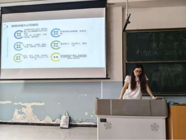 宣讲环节,企业代表向学生生动呈现了公司深耕风电运维、服务“双碳”目标的使命,介绍了陕西长风新能源业务覆盖全国重点风场,承担风机技改、智能运维的核心任务。“新能源行业需要青年力量,我们通过师徒制培养和弹性工作制,助力新人快速成长。”企业代表在宣讲中提到。