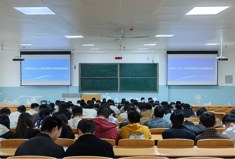 宣讲环节,企业代表通过宣传片及PPT向学生全方位展示了公司的发展历程、辉煌成就、业务板块以及未来规划。作为我国核工业建设领域的骨干力量,中核二三承担众多国家重点核工程项目的建设任务,在核电、核燃料、核化工等领域具有卓越的技术实力和丰富的项目经验。现场互动环节,同学们积极提问,企业代表详细解读了学生关注岗位的职责要求、技能需求和职业发展路径。