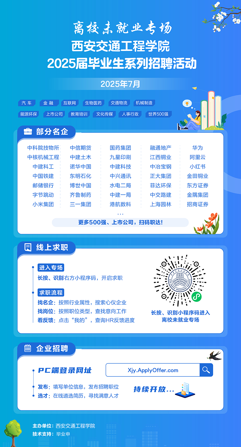 为贯彻落实教育部关于2025届毕业生就业工作的总体部署,落实就业育人工作要求,有效助力我校毕业生高质量充分就业,现决定举办专场线上招聘活动。