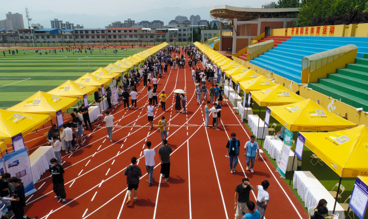 为深入贯彻落实党中央、国务院“稳就业”“保就业”决策部署和陕西省教育厅2022年3月28日发布的《关于开展陕西高校书记校长访企拓岗促就业专项行动的通知》(陕教生办〔2022〕4号),大力构建毕业生与用人单位之间的交流平台,5月18日上午,我校在校体育场举行第二场“访企拓岗促就业—2022届毕业生春季综合类校园招聘会”,本次招聘会严格按照疫情防控要求举行。