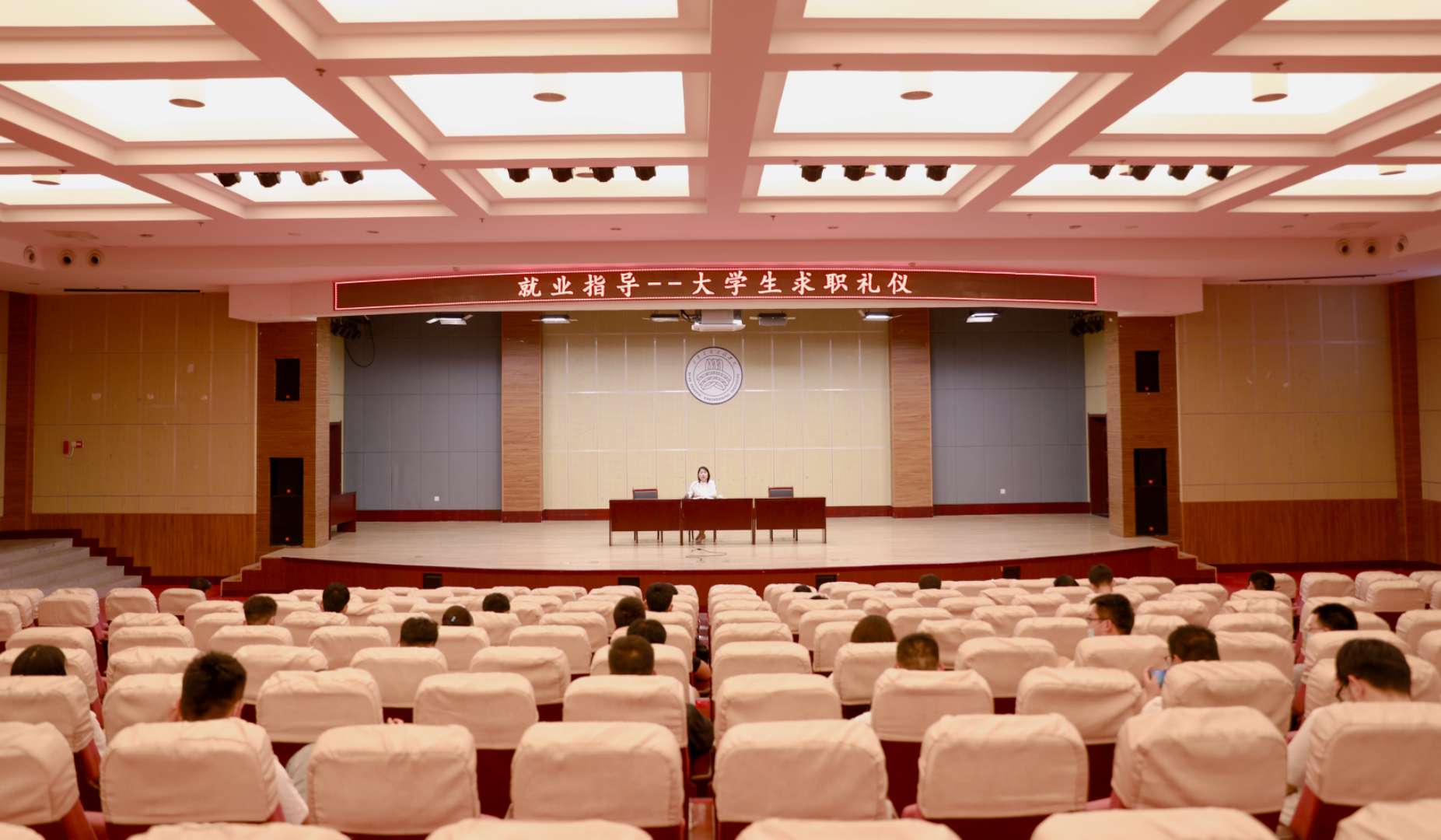 周三就业指导中心就业指导科科长。国家高级就业指导师屈茹为同学们带来了大学生求职礼仪、面试技巧。从服装礼仪、饰物礼仪、仪容、仪态方面几个方面进行了介绍。使毕业生能够更加自信的面对面试。