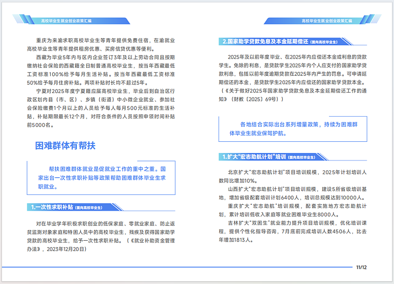 毕业季来临,正值求职创业关键期,为更精准、高效地服务高校毕业生就业创业需求,特整理高校毕业生就业创业政策汇编(2025年版)中面向高校毕业生政策内容,快来看看吧。