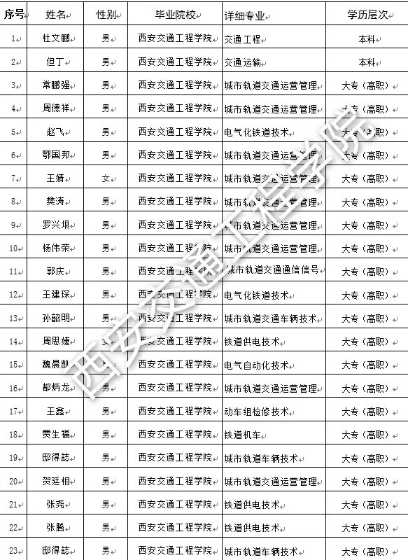 中国铁路青藏集团有限公司2020年第三批录取西安交通工程学院毕业生名单公示
