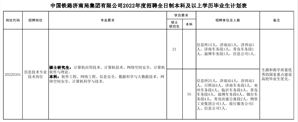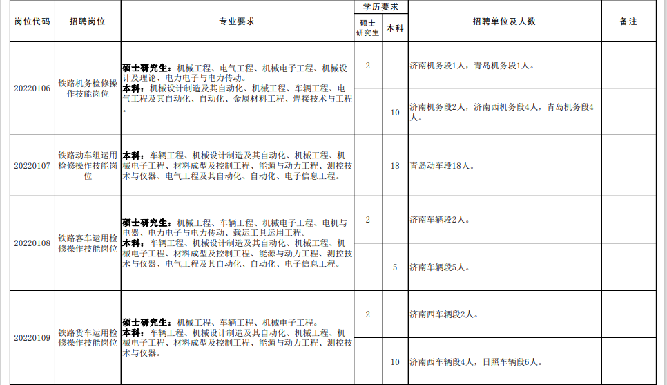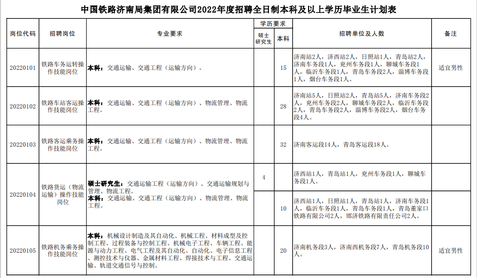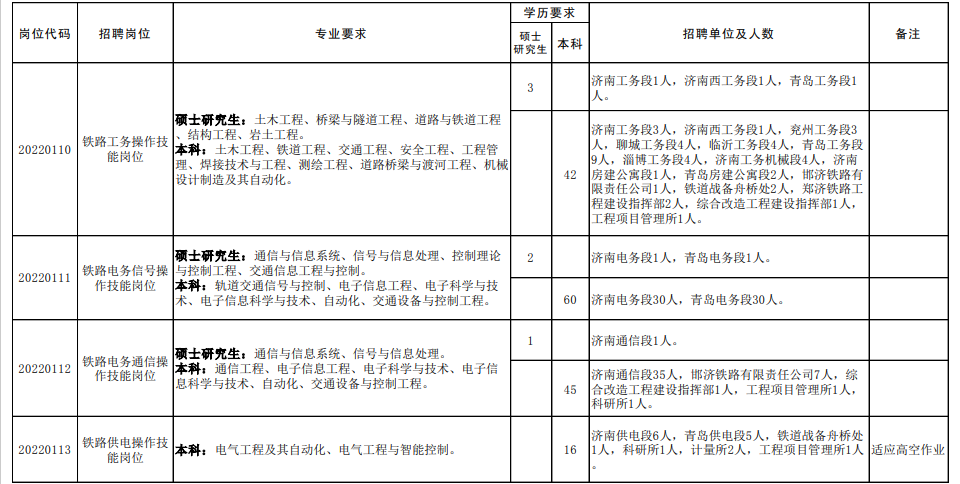 中国铁路济南局集团有限公司2022年度招聘普通高校本科及以上学历毕业生公告(三)