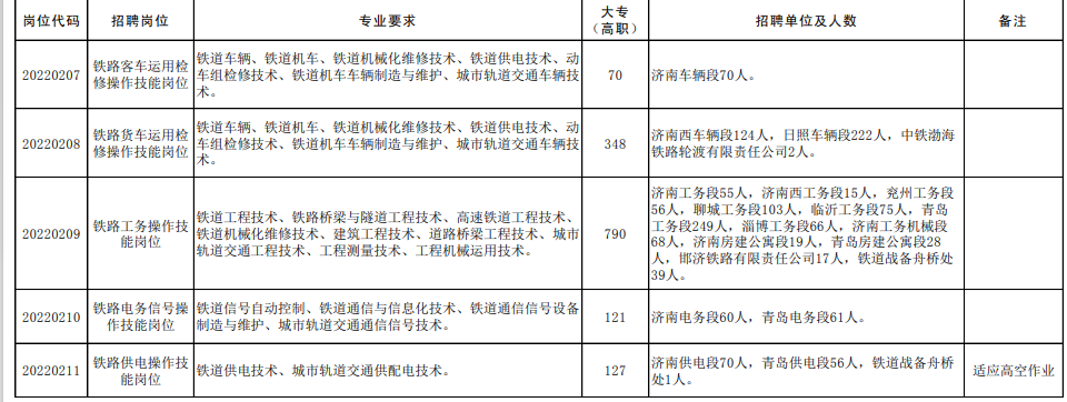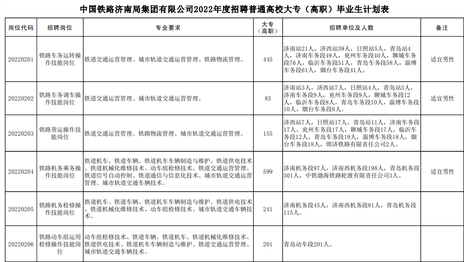 中国铁路济南局集团有限公司2022年度招聘普通高校大专(高职)毕业生公告(一)