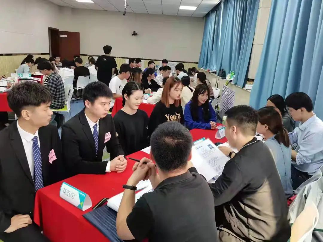 在模拟面试环节,从杨凌职业技术学院毕业生中选取了25位存在就业困惑的毕业生,参训老师5人一组对学生开展了一对一简历和面试指导,然后组内轮流互换学生进行面试交流。老师们根据所学知识,从用人单位的视角分析人才需求,指出了毕业生在面试中的长处与不足。毕业生通过模拟面试,进一步把握了求职技巧,增强了就业信心。