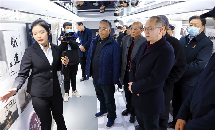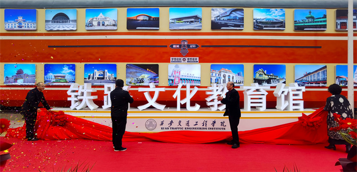 开馆仪式由我校党委书记马智勇主持,袁宁、张五成、吴荣、张晋生共同为铁路文化教育馆揭牌,刘建朝宣布铁路文化教育馆开馆;我校理事郭洪涛介绍了铁路文化教育馆建设相关情况。据介绍,“铁路文化教育馆”是学校创始人张晋生教授为践行教育兴国使命,坚定交通报国信念,创新轨道交通教育平台提议建设的。“铁路文化教育馆”设在退役的双层客车上,展地面积282平方米。展馆以“立德树人”为宗旨,以“可见”、“可感”、“可参与”的形式,以铁路发展历史的时间为轴线,分“路漫漫其修远兮——肇始”、“有志者,事竟成——更迭”、“追星逐月日千里——裂变”、“君子自强不息——新途”四个单元,用412多幅图片、25239个文字,208个小物件和虚拟讲解员、360全息展台、4折投影幕、移动滑屏等20多台多媒体设备,融入铁路特色文化,渗透铁路发展教育理念,打造具有鲜明铁路特色的综合体验教育空间,展示了中华民族百年铁路崛起发展的复兴史。该馆将作为学校开展轨道交通专业教学、普及铁路知识,传承铁路文化的重要平台。
