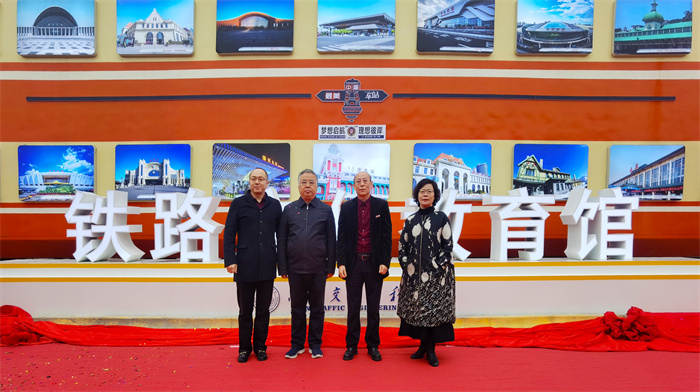 袁宁(左二)、张五成(左一)、吴荣(右一)、张晋生(右二)共同为铁路文化教育馆揭牌