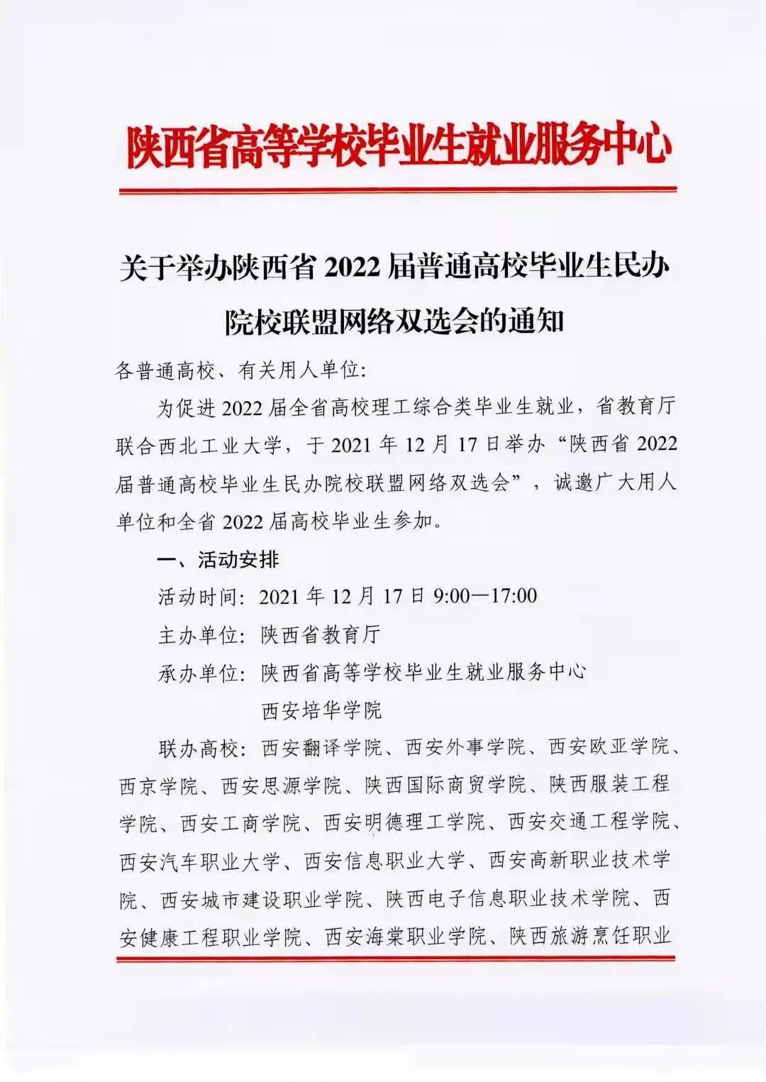 关于举办陕西省2022届普通高校毕业生民办院校联盟网络双选会的通知