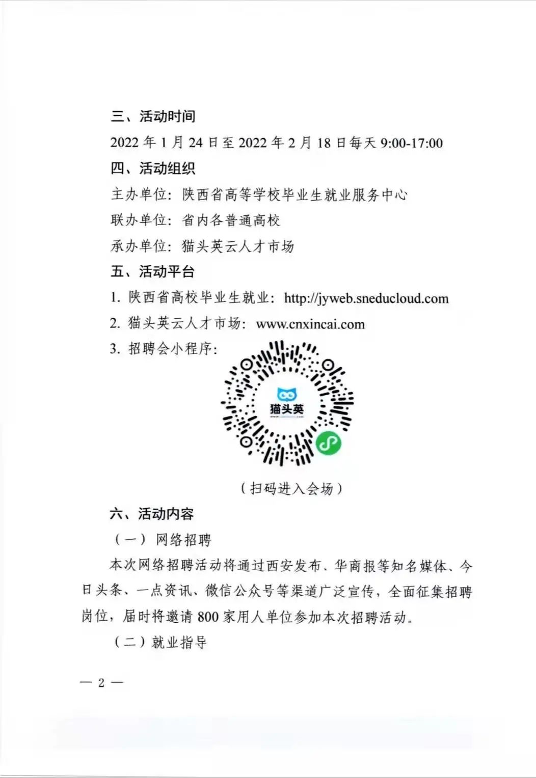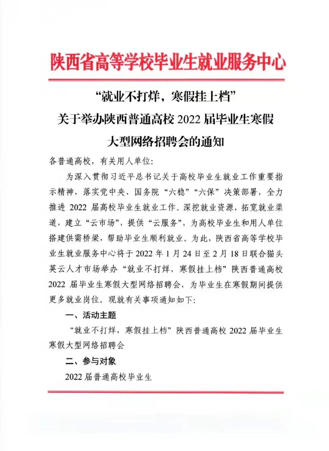 “就业不打烊,寒假挂上档”关于举办陕西普通高校2022届毕业生寒假大型网络招聘会的通知