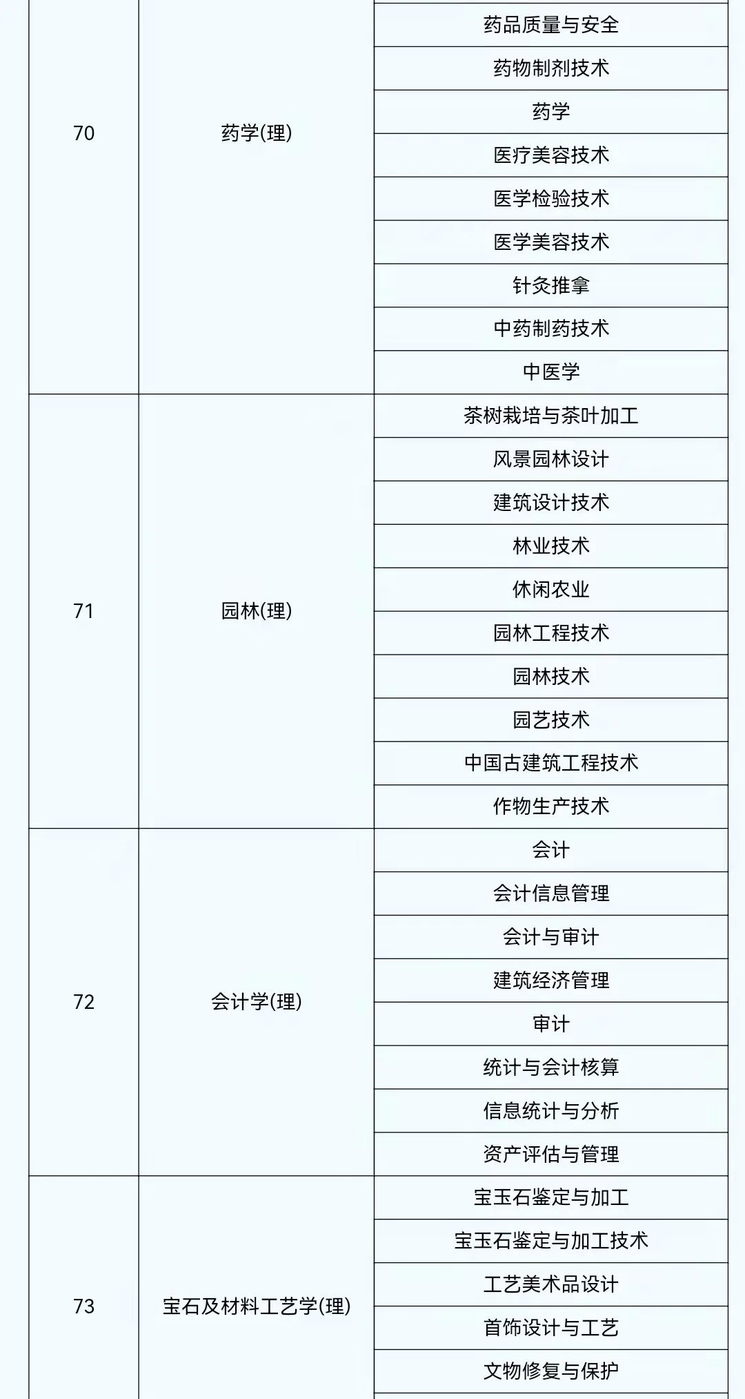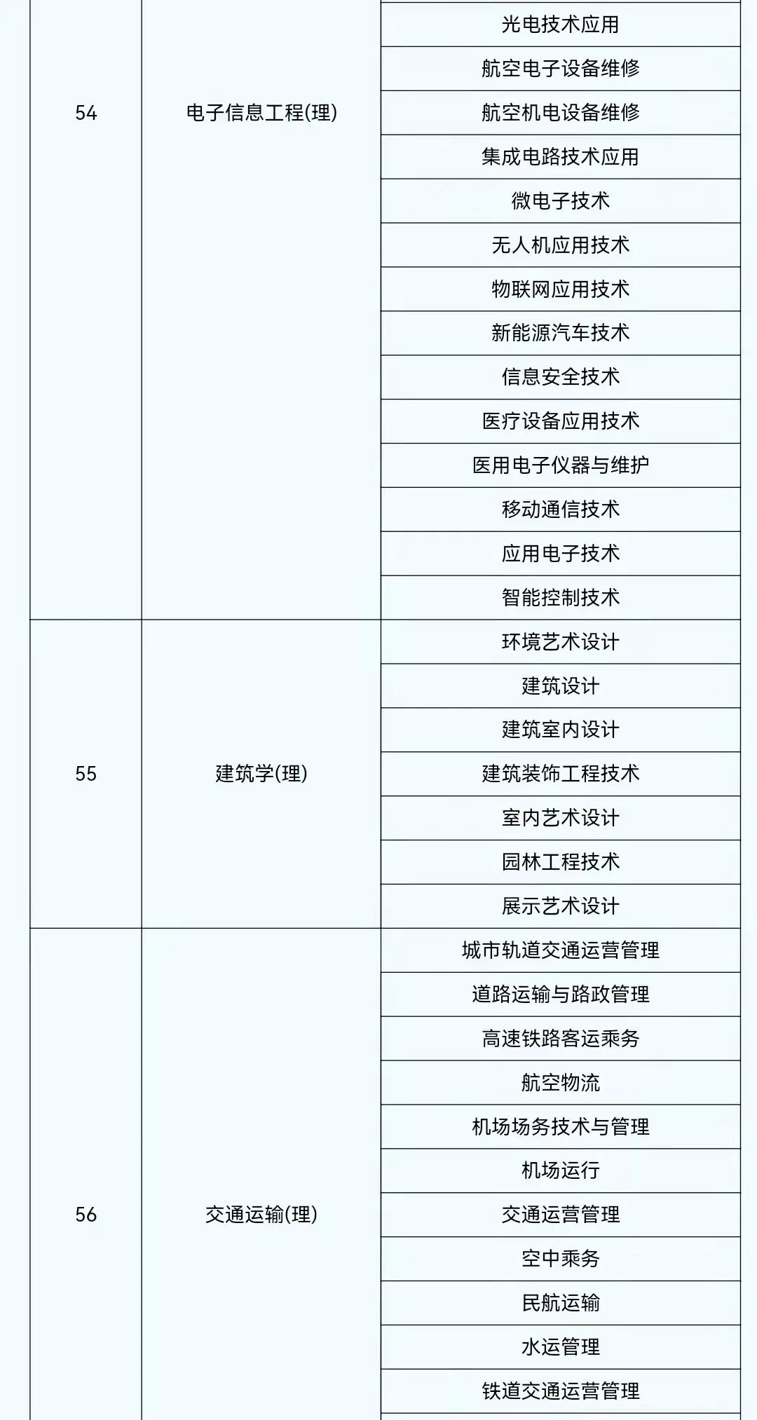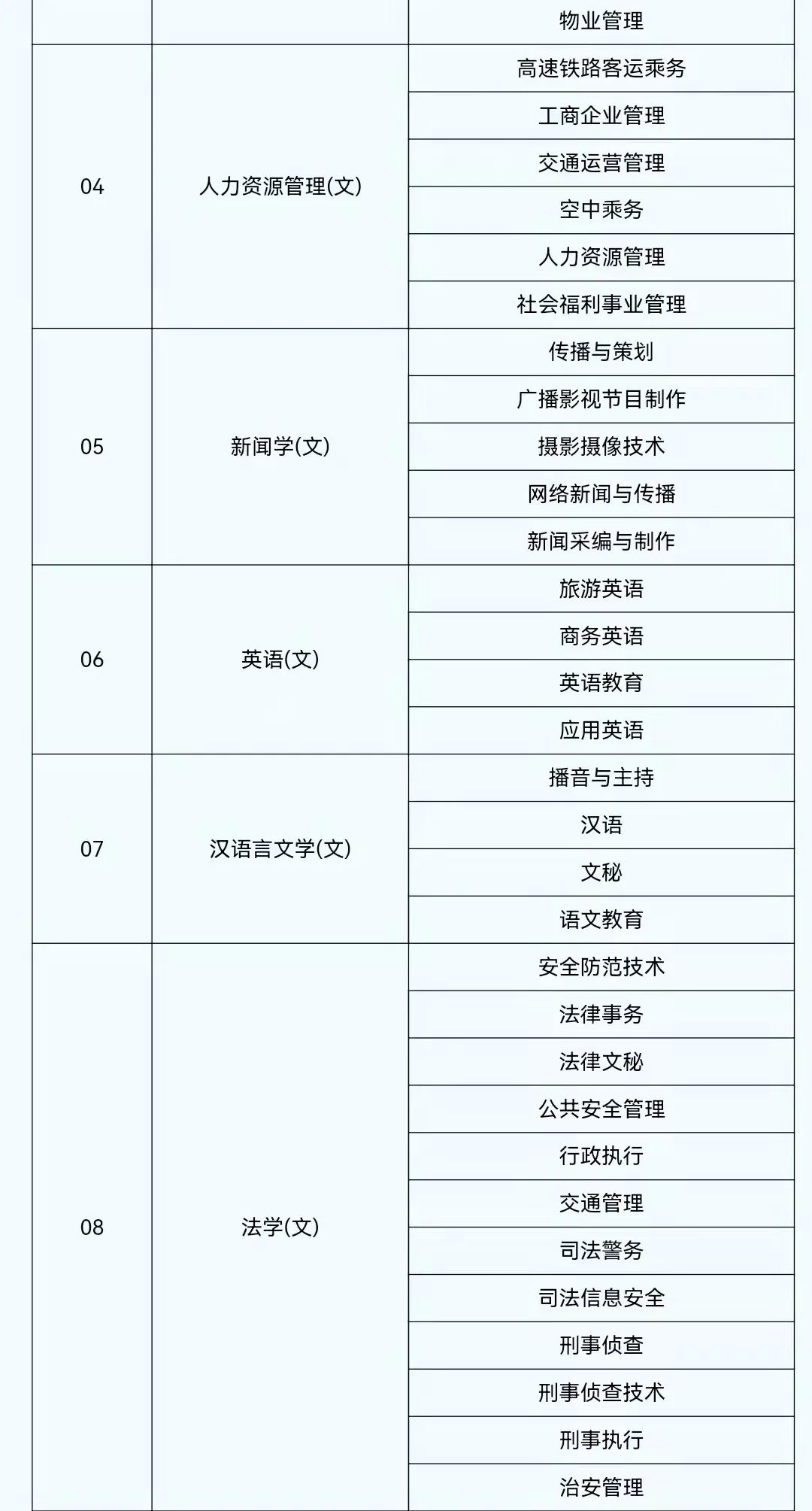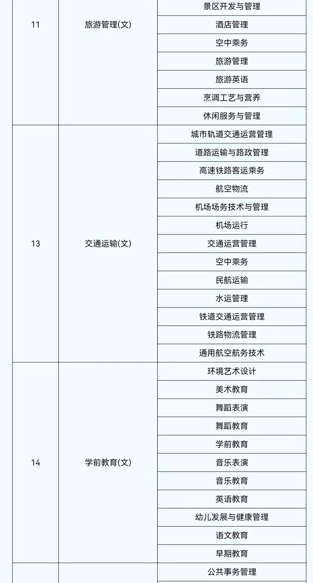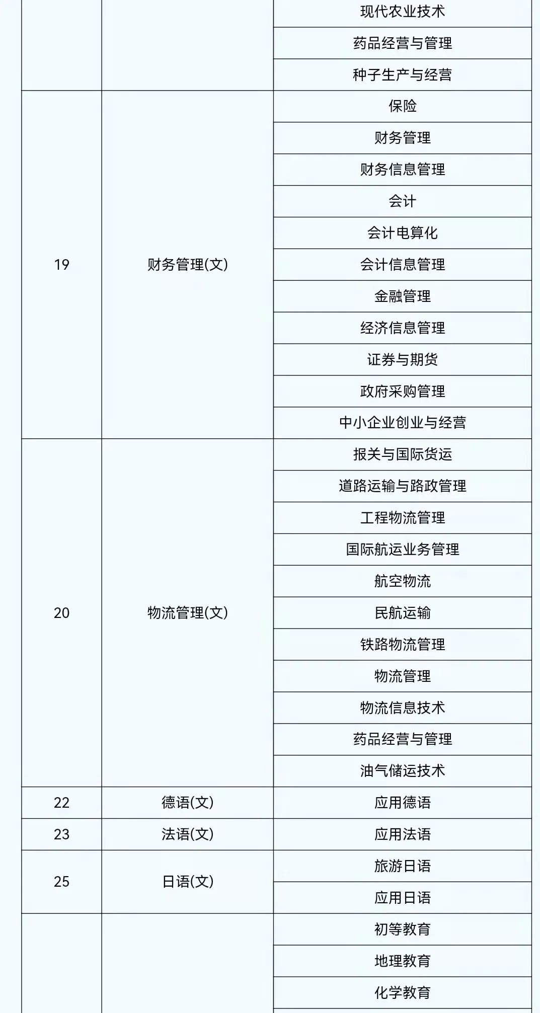 2022年陕西省普通高等学校专升本考试专业对应目录