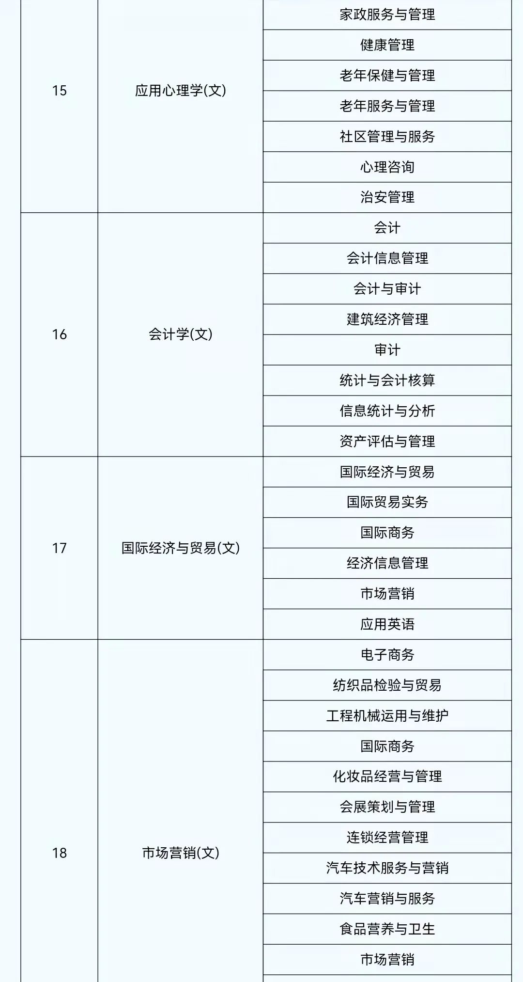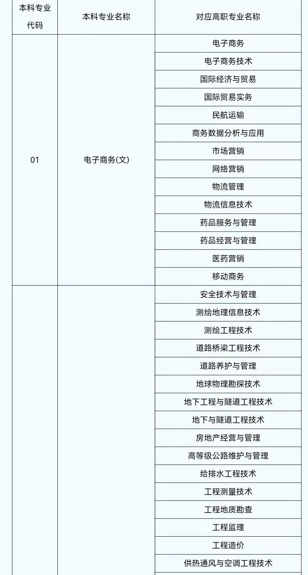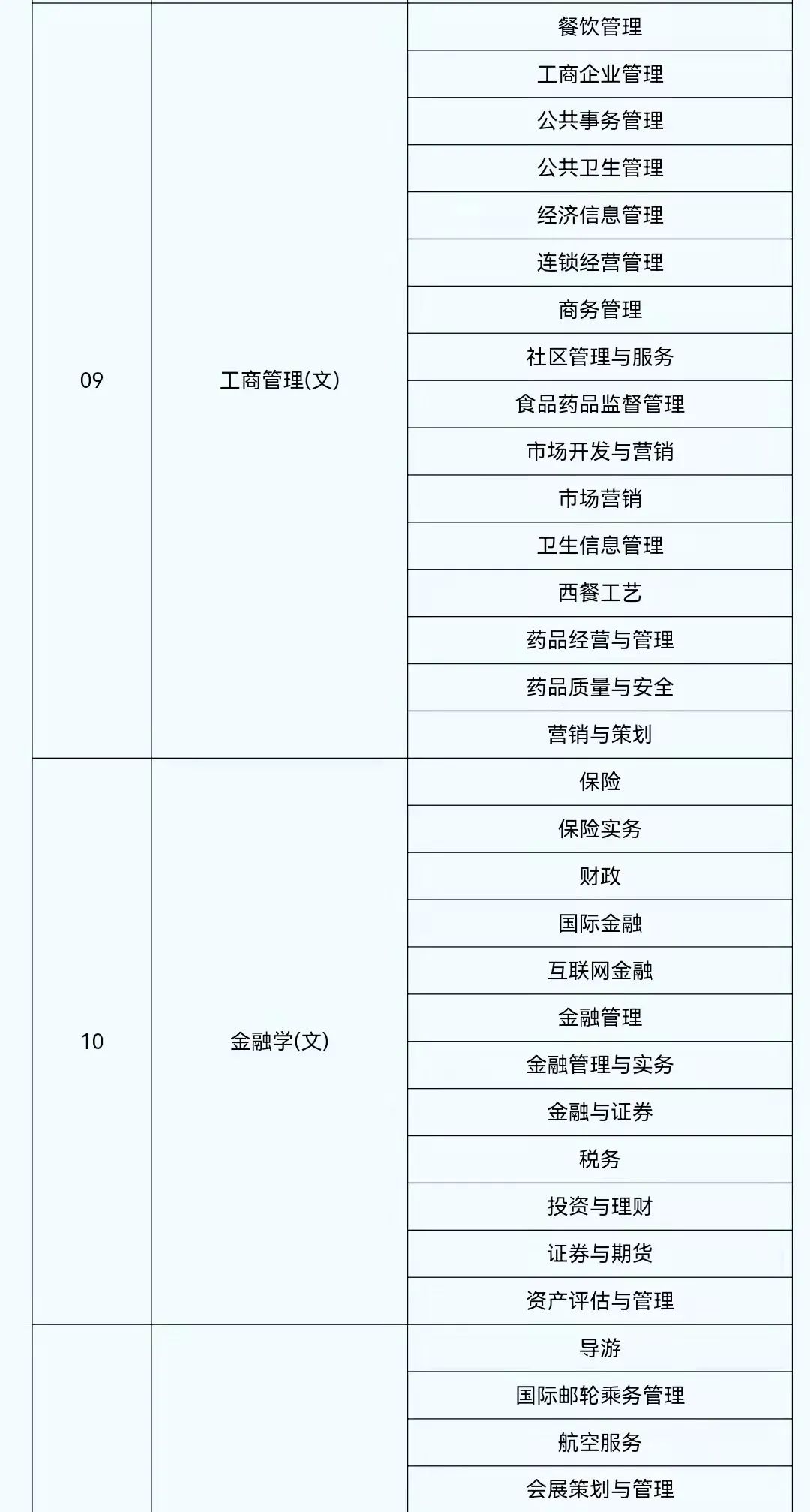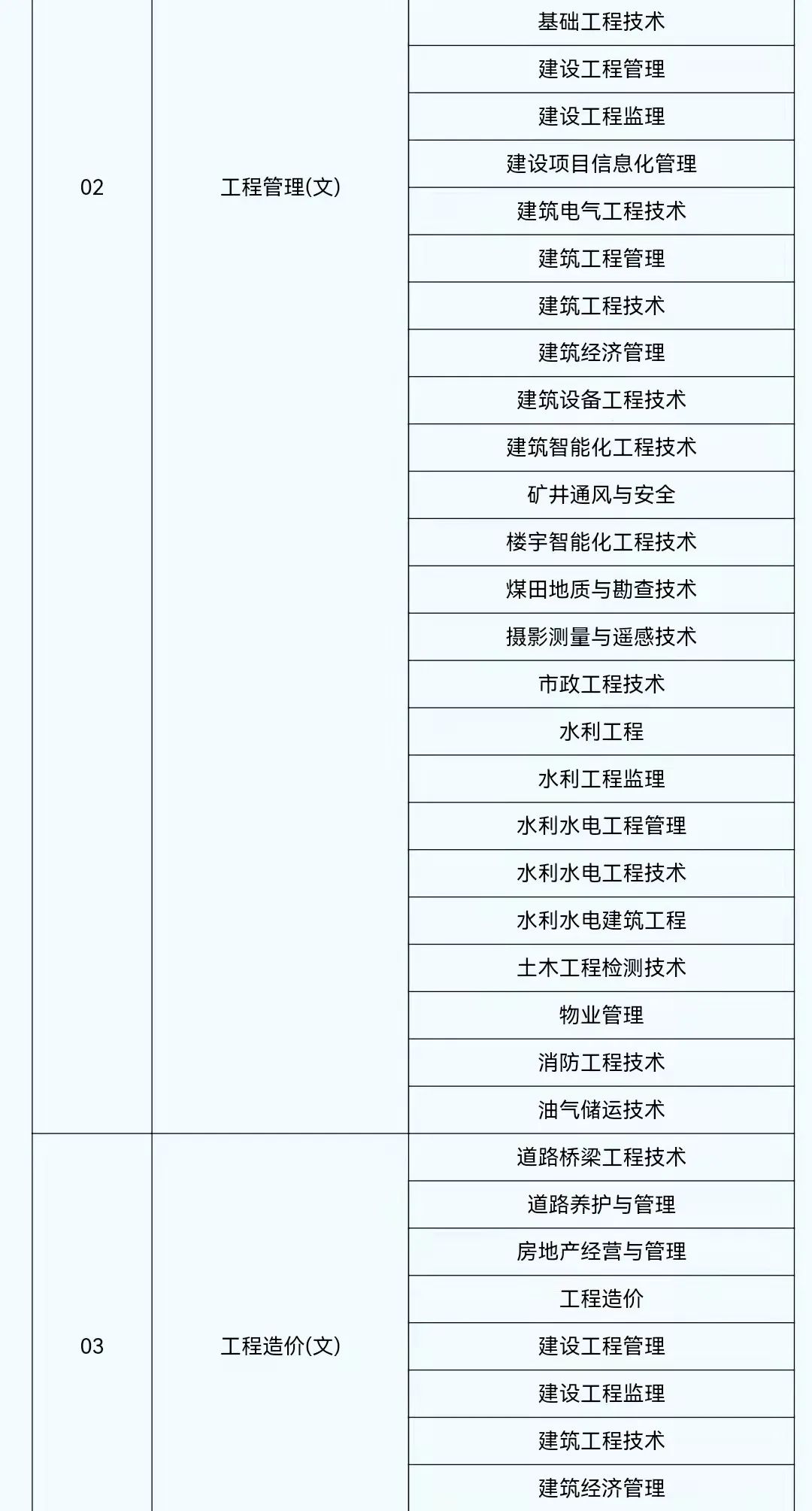 2022年陕西省普通高等学校专升本考试专业对应目录