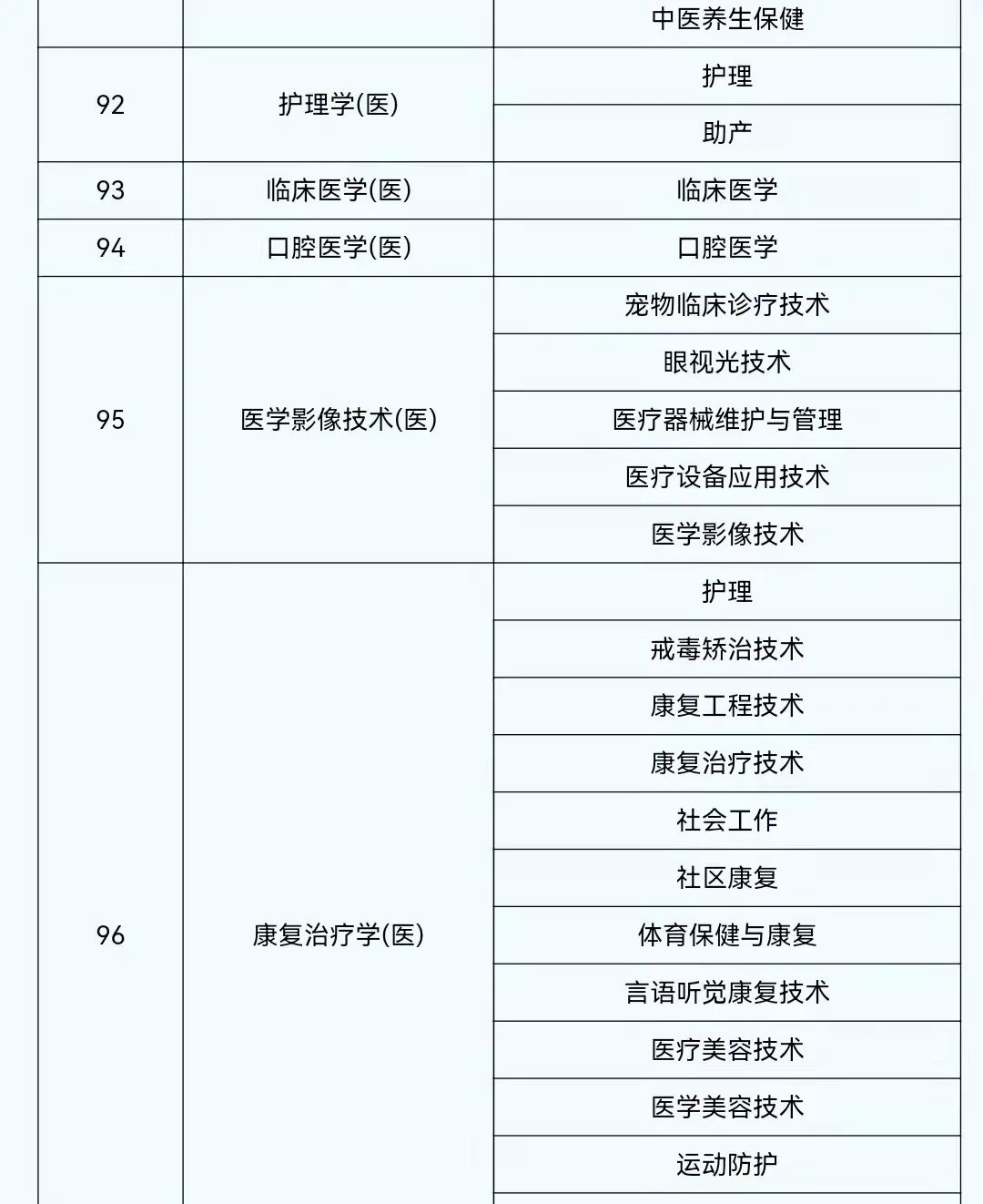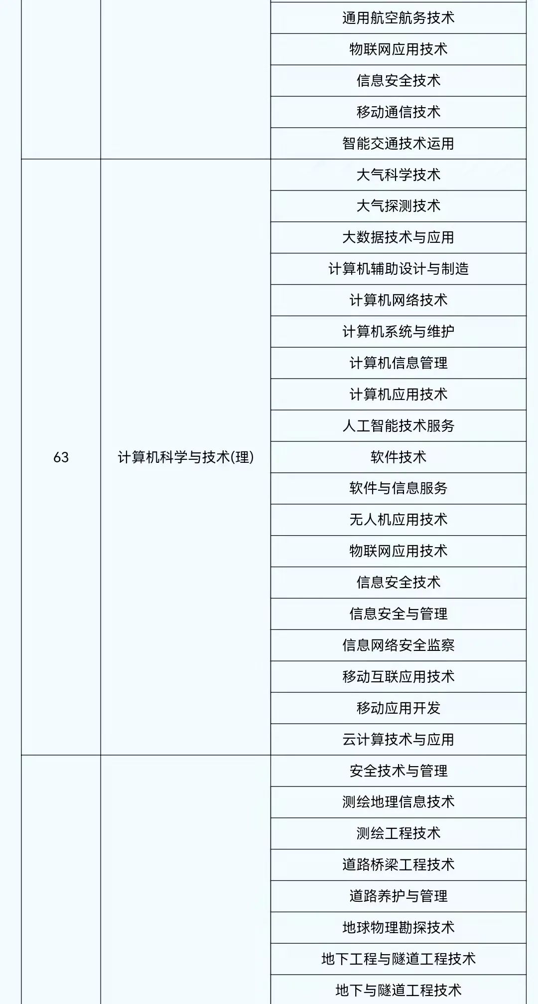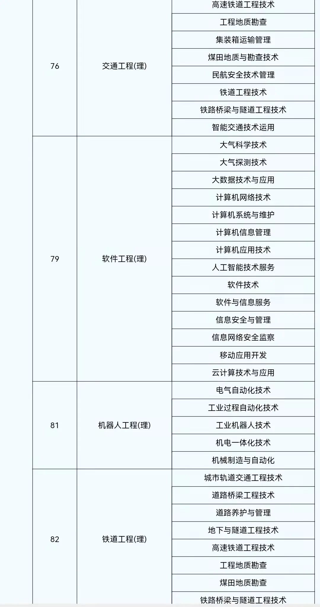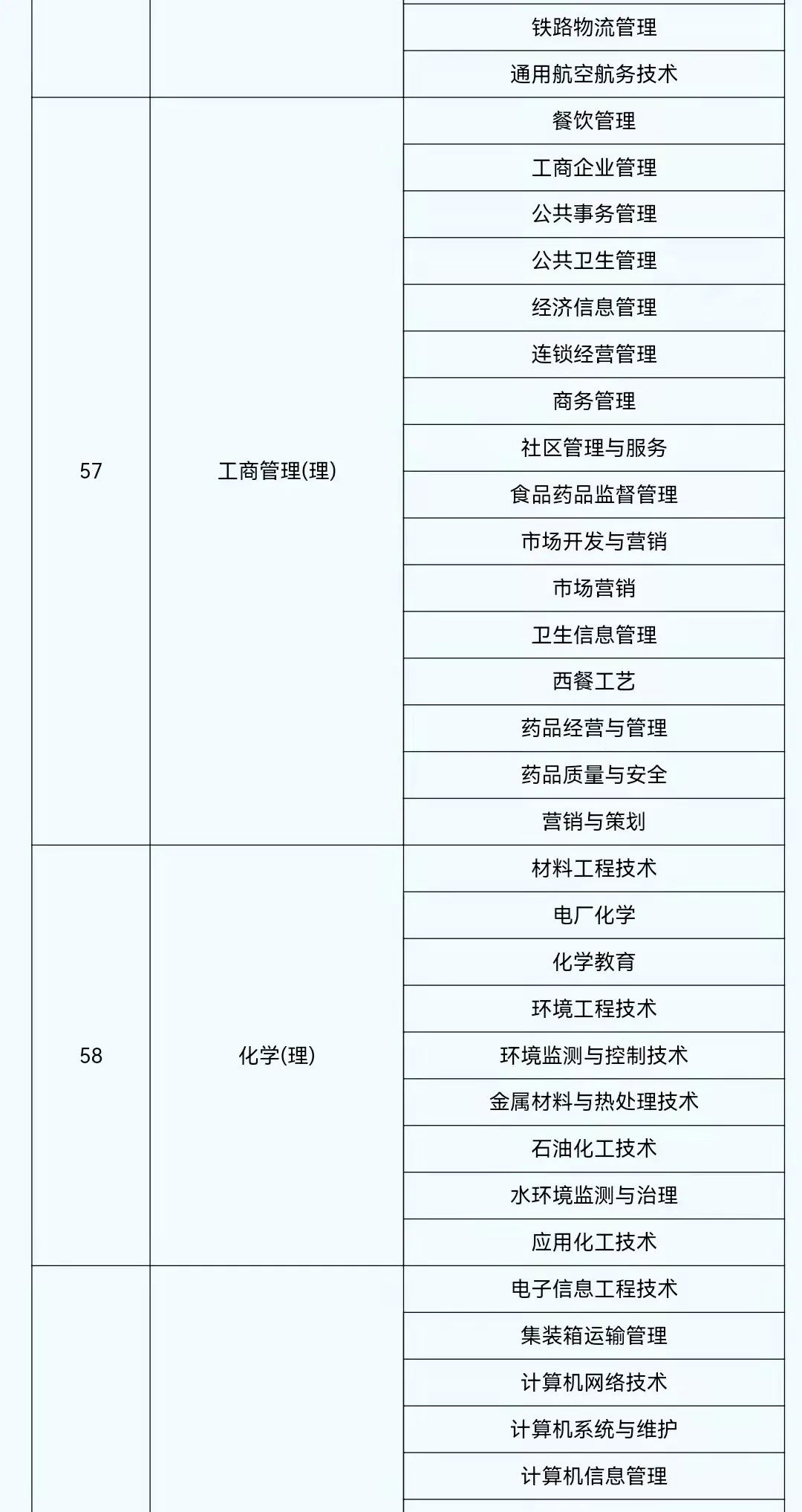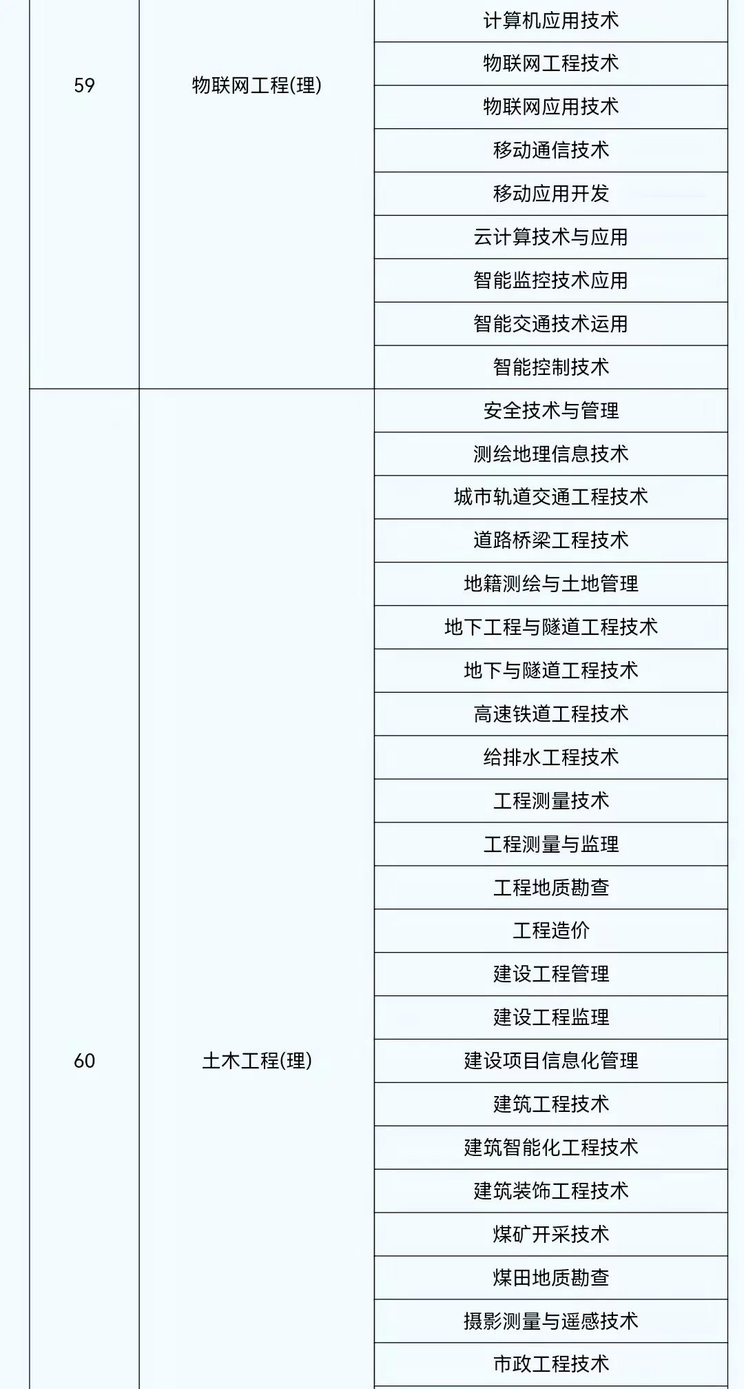 2022年陕西省普通高等学校专升本考试专业对应目录