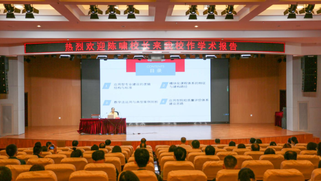 为进一步推进应用型本科高校建设和应用型课程建设,提高应用型人才培养质量,9月22日,海口经济学院校长陈啸教授在学术报告厅作题为“OBE理念下应用型院校专业建设与模块化课程体系重构——兼论应用型院校质量评价体系建设思路”专题报告。校领导刘建朝、马智勇、徐炜、赵征,各院(部)院长(主任)、副院长(副主任)、专业负责人、教研室主任、全体无课教师及教务处、质评处全体人员参加了本次报告会。报告会由校长助理兼教务处处长潘春辉主持。