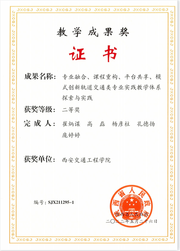2022年,我校崔炳谋教授主持,高磊、杨彦柱、孔德扬、庞婷婷参与的教学成果项目《专业融合、课程重构、平台共享、模式创新轨道交通类专业实践教学体系探索与实践》荣获陕西省高等教育教学成果二等奖,这是我校首次获评省级教学成果奖,也是我校在应用型本科教育研究领域取得的历史性突破;教师团队都娟丽、李晋武、李宁宁、孙进、赵翔彦在全国仿真创新应用大赛中荣获全国一等奖;贾雄伟老师荣获全国工训青年教师微课教学竞赛三等奖;刘晓航老师在省级思政课“大练兵”活动中获得教学团队能手;孙媛老师获得省级课堂教学创新大赛三等奖。与此同时,我校成功获批为国家自然科学基金依托单位;城市轨道交通道床关键技术创新团队入选2022年度陕西高校青年创新团队;宁慧教授入选陕西高校第五批“青年杰出人才支持计划”;杨碎明副教授团队获得陕西高等学校科学技术研究优秀成果奖三等奖;教师发表核心以上论文近160余篇。