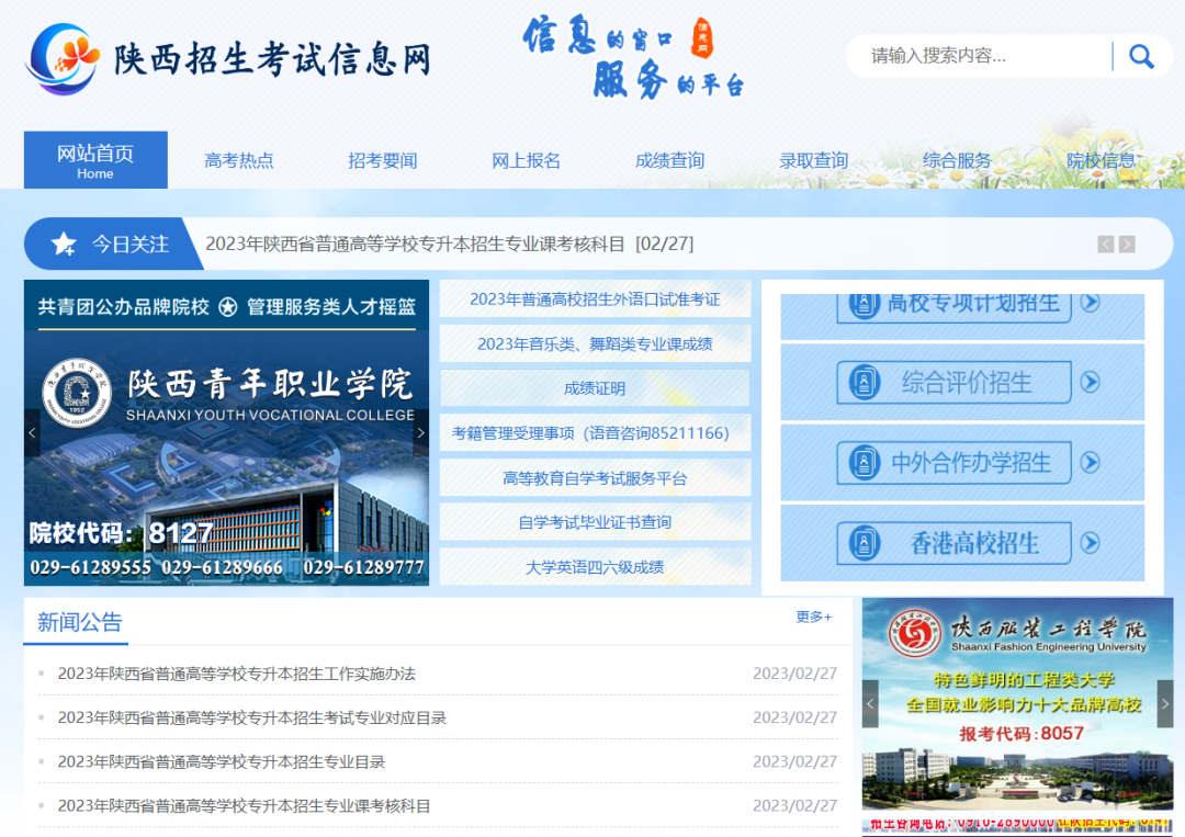 考生可通过陕西招生考试信息网或陕西省教育考试院网站查询陕西省教育厅制定的《2023年陕西省普通高等学校专升本招生专业目录》《2023年陕西省普通高等学校专升本考试专业对应目录》,供报名时参考。