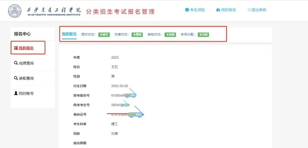 点击左边导航栏“我的报名”