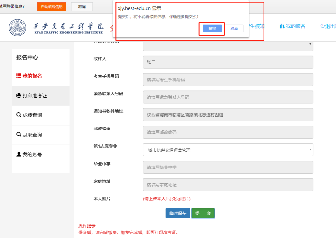 (温馨提示:选报专业一定要谨慎,提交后不可修改)