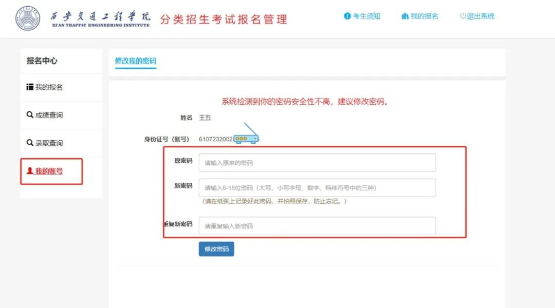 登录后系统强制修改密码,修改后的密码一定要记牢。