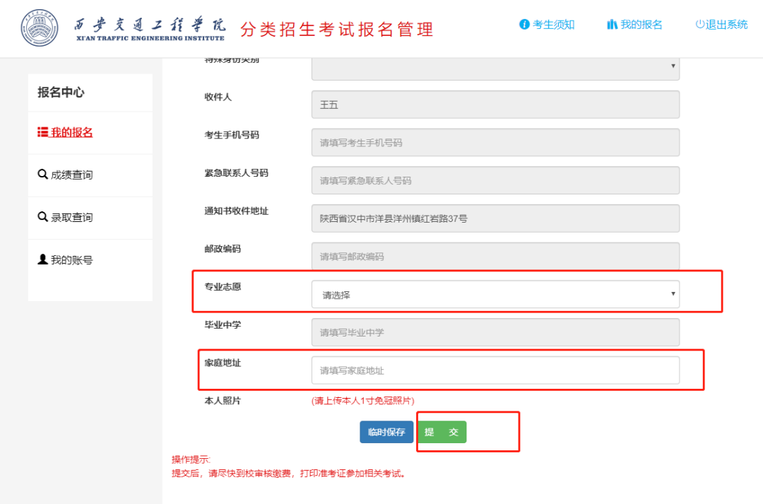 家庭地址填写完整点击提交按钮。