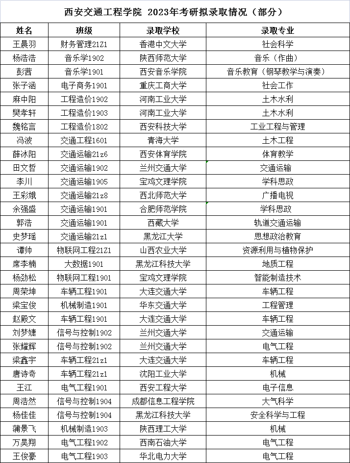 交通运输21Z6班,被西安体育学院体育教学专业录取为硕士研究生。