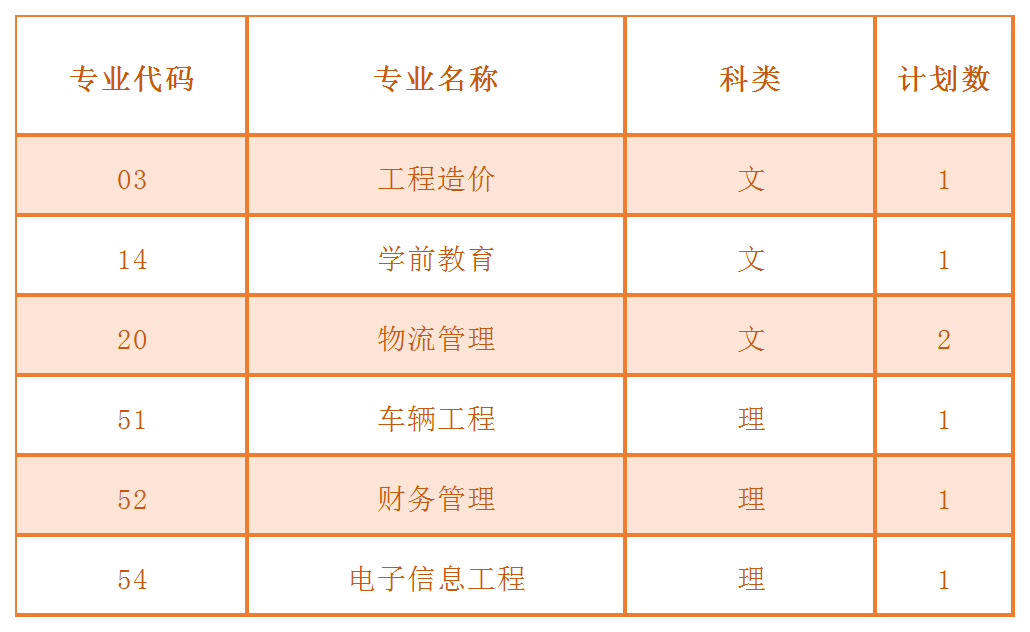 2023年专升本征集志愿专业计划