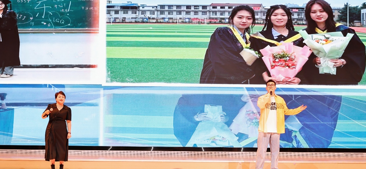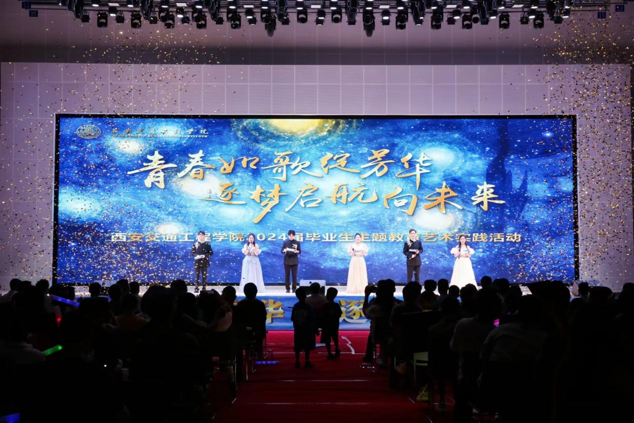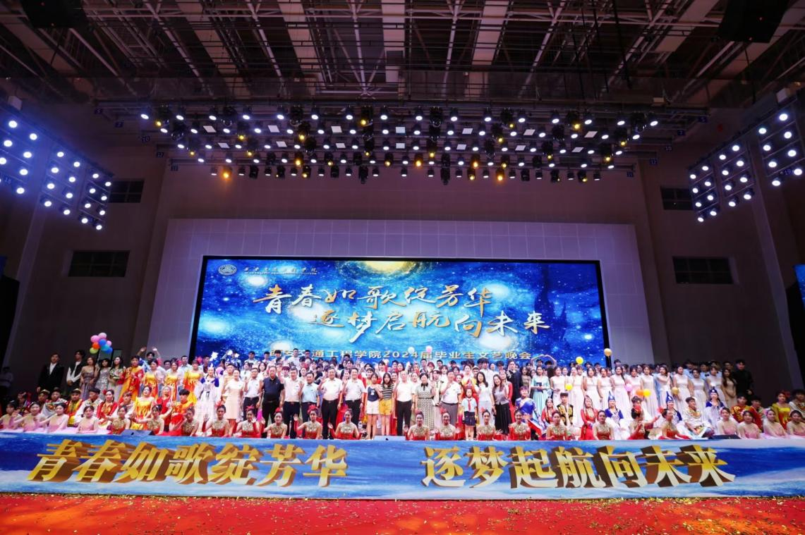 晚会在青春动感、活力四射的舞蹈《我的未来式》中正式拉开序幕。本场晚会由“朝花夕拾 初相遇”“生逢盛世 展风华”“踏歌远航 扬新帆”三个篇章组成,与全体毕业生们留下了属于2024届的青春记忆。老师和同学们用歌声和舞蹈为毕业生们送去了祝福,精彩的节目轮番上映,有笑有泪有情有义。李银玲、丰硕老师带来的歌曲《再一次出发》,用歌声祝福毕业生们在新的道路上勇毅前行;歌伴舞《奔跑的青春》、男声四重唱《自己的骄傲》展现出新时代青年的拼搏力量。张雯雯老师与毕业生刘子建同学用歌曲《离别开出花》深情告别,尺素寸心,师生情谊弥深坚定。美轮美奂的现代舞《凤凰花开的路口》用肢体语言诉说着一个关于青春、关于成长的故事。宁慧、李文龙、李银灵老师一曲《雾里》,为毕业生们送上了“相信脚下有路前方有光,拨开迷雾追寻梦的方向”的美好祝福。精彩的歌舞《像你这样的朋友》《给你的歌》表达了离别之际的不舍之情,全场观众挥动着手中的荧光棒和台上的歌手一起大声合唱,氛围温馨浪漫,让人眼含泪花;光影幕布剧《时间的年轮》令人耳目一新,随着光与影的交织重现了2024届学生历经“录取”“入学”“军训”“疫情”“上课”“毕业”等大学故事;晚会中动感、青春的歌舞数不胜数,《创世》《machika》等节目呈现了毕业生们灿烂美好的大学校园生活。