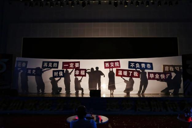 辅导员代表肖茹峰、赵德浩、马红霞、贾晶、周明、周娜6名教师倾情演唱歌曲《祝你一路顺风》,表达对临行学子的殷殷期盼和美好祝愿。他们用一句句送别的话语和学院大点名诠释了辅导员老师与毕业生大学四年生活工作相处的点滴,他们饱含深情,眼泛泪光,感人至深。维吾尔族、回族、哈萨克族、蒙古族、藏族的师生代表们带来的民族舞《母亲是中华》隽永平和、博大恢弘的舞蹈展现了展现了中华各民族像石榴籽一样紧紧抱在一起的桑梓情谊。宁慧、李梦阳老师演唱的《天耀中华》磅礴大气,抒发了对祖国母亲至深至纯的爱意和对我校毕业生与祖国共奋进的希冀。在谢幕时刻同学们用歌曲《和你一样》致敬青春,表达内心的留恋与不舍。