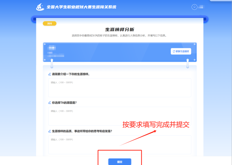 4.点击要分析的“生涯榜样”,按要求填写后提交。