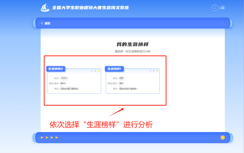 3.填写完成后可继续进行生涯榜样分析。
