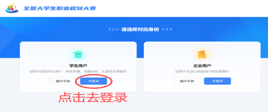 进入登录页面,在学生用户下点击“去登录”。