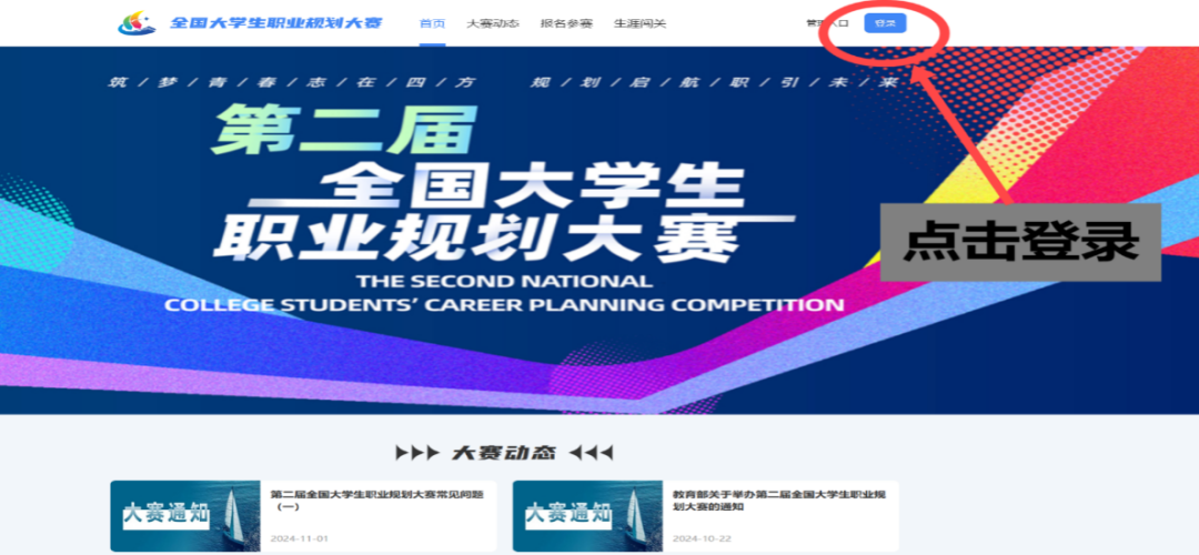 通过参赛网址进入大赛主页,点击“登录”。