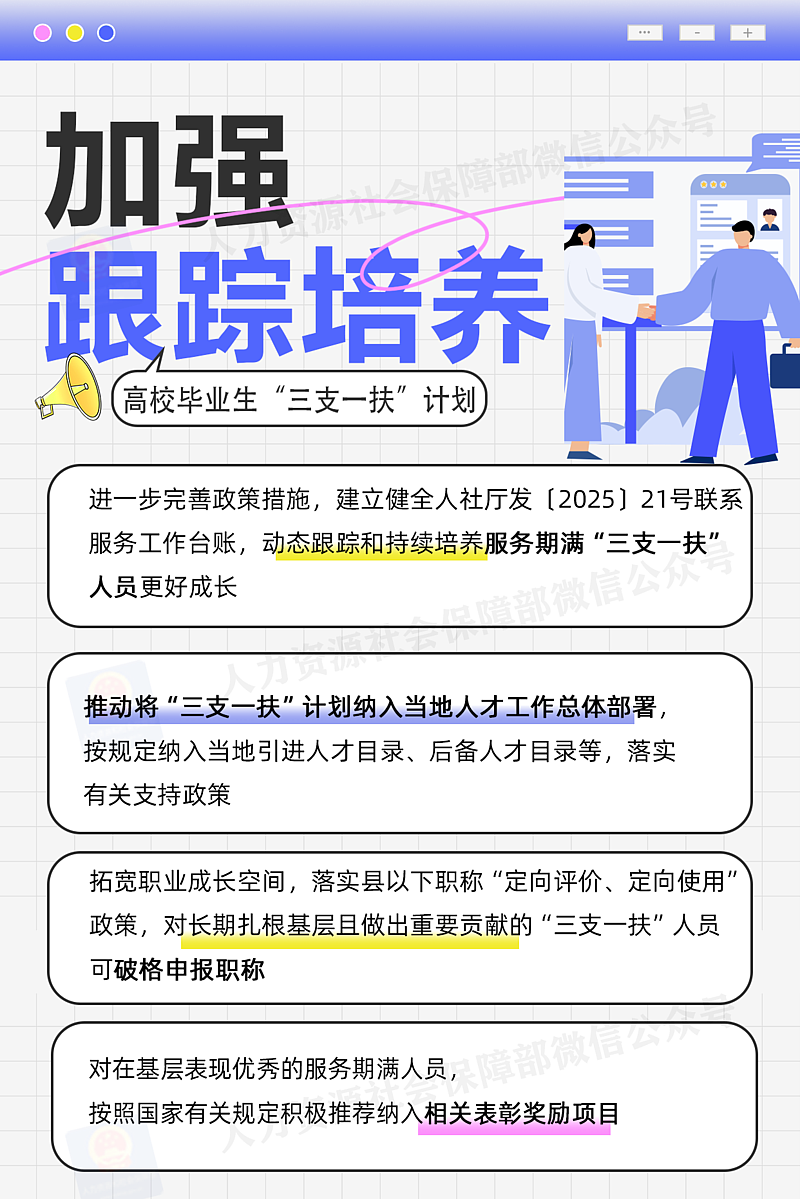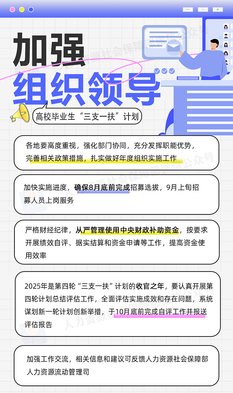 近日,人力资源社会保障部、财政部印发通知,部署实施2025年高校毕业生“三支一扶”计划,明确今年中央财政支持招募34430名高校毕业生到基层、到西部从事支教、支农、支医和帮扶乡村振兴等服务,各地可结合实际适当扩大招募规模。