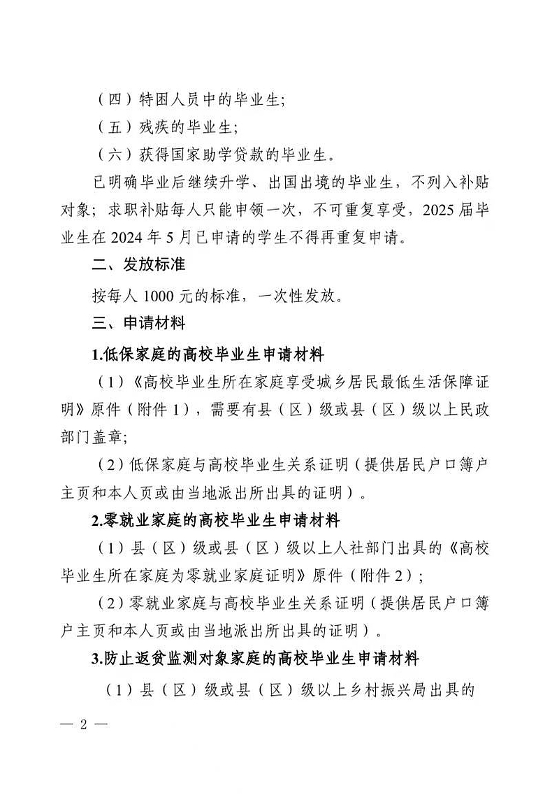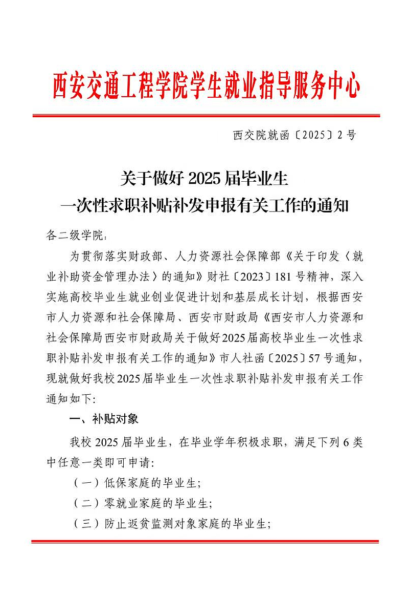 关于做好2025届毕业生次性求职补贴补发申报有关工作的通知