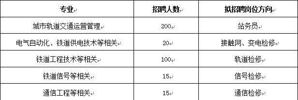城市轨道交通运营管理、电气自动化、铁道供电技术、铁道工程技术、铁道信号、通信工程等相关。