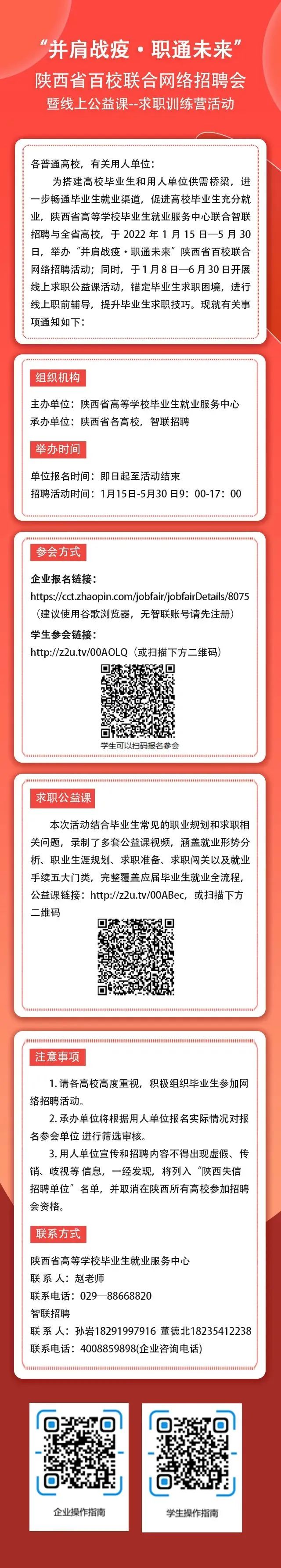 “并肩战疫·职通未来”陕西省百校联合网络招聘会活动来啦!