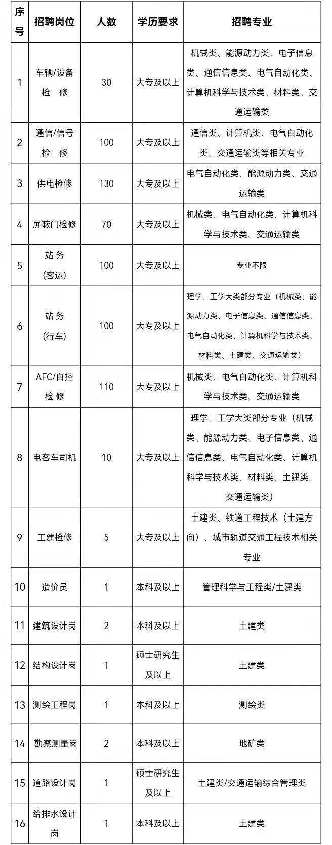 (六)以上招聘岗位大部分为地铁运营生产一线基层岗位,需24小时四班两运转,需上夜班,经常搬运大型器械、登高作业等。