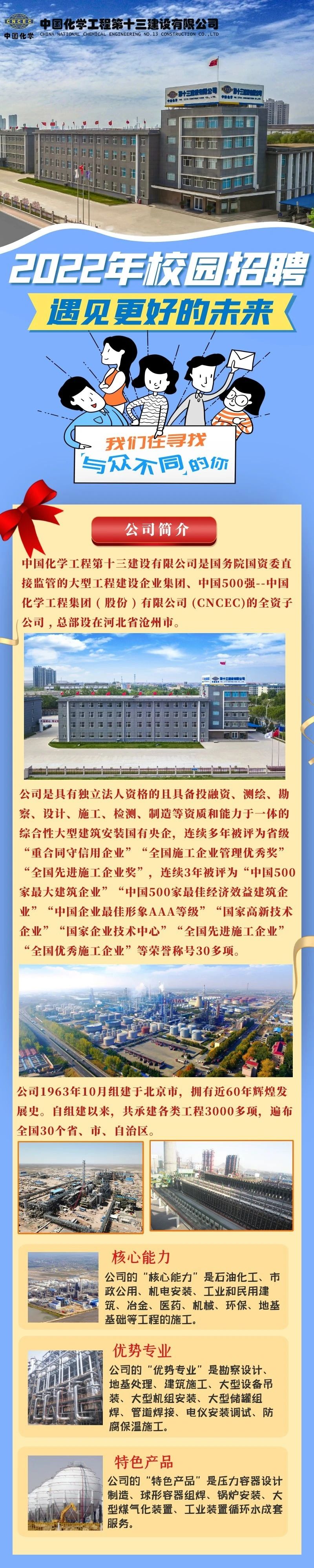 【招聘公告】中国化学工程第十三建设有限公司2022届校园招聘正式启动
